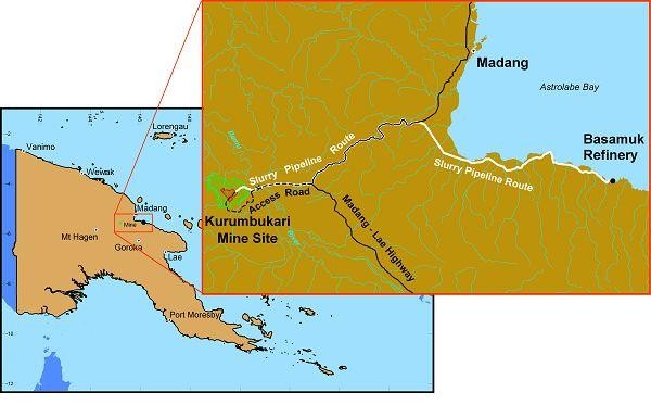 The Basamuk Refinery is on the coast of Basamuk bay, 5m to 60m above the sea level and 55km to the southeast of Madang. It has 28 unit projects, including slurry treatment, high pressure acid leaching, CCD washing, neutralization ,Fe/Al removal and precipitation as well as supporting components such as limestone preparation, sulfuric acid plant, water plant, power plant and wharf.